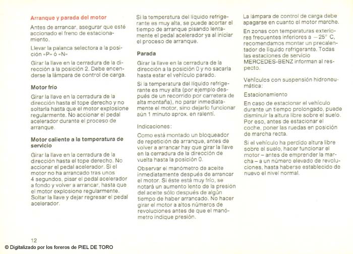 Manual de usuario del Mercedes 420 SE/SEL/SEC - 500 SE/SEL/SEC - 560 SEL/SEC W126