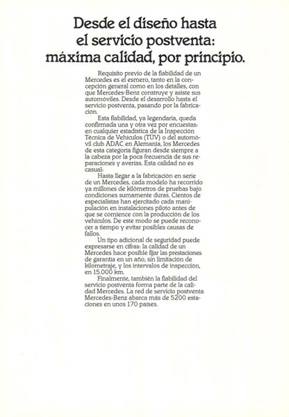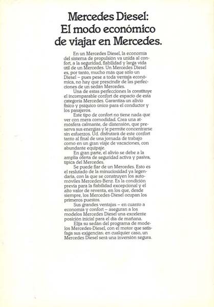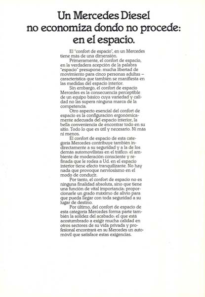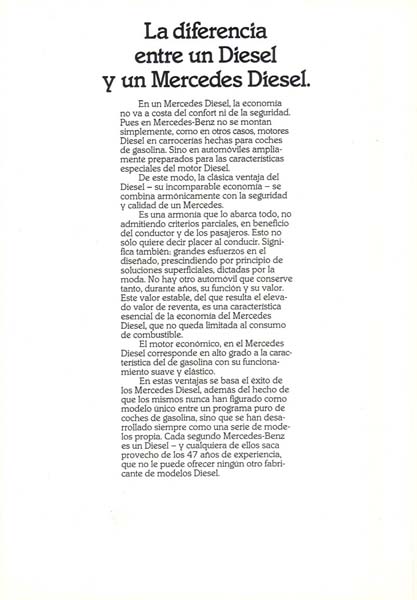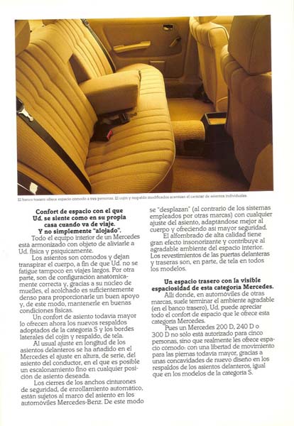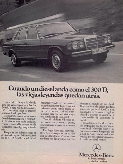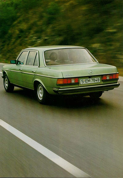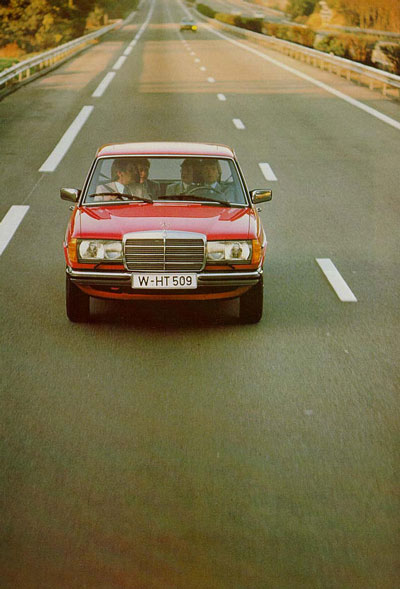Yo tengo poca experiencia con la marca y con este coche. Ni dos meses. Se trata de un W123 200D matriculado el 1-1-79. Le he notado un nivel muy bueno de estabilidad. Dado su gran peso y su, que le vamos a hacer, poco nervio. Su poco caballaje hace que el conductor este bien atento a entrar en las cuestas. Si vas a mas de 80 Km/hora el adelantar a otro coche en una carrtera de doble circulacion no es una opcion.