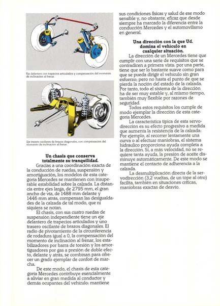 La dirección tiene un comportamiento intachable, a lo que encima ayuda la excelente dirección asistida. Los frenos van sobradísimos, yo diría que estan sobredimensionados. Esto siempre ha sido la tónica de todos los Mercedes, por lo menos desde los W111 hacia acá.