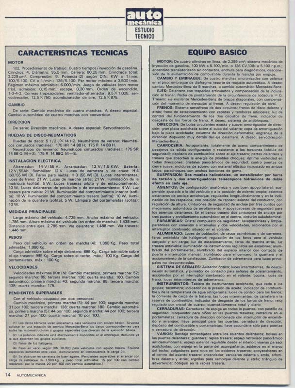MERCEDES 230E. Automecánica nº 153, Diciembre 1982