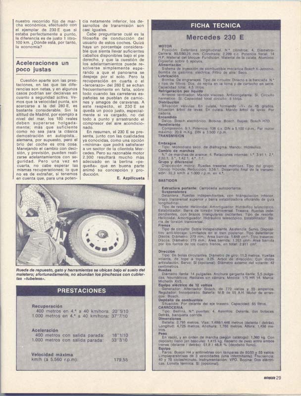 MERCEDES 230 E. Velocidad nº 1009, 10-enero-1981