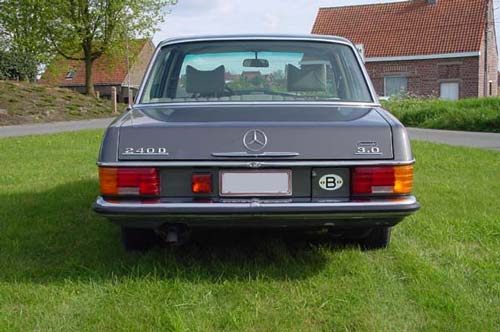 1. Es curiosa la forma en que se nombró al W115 con motor de 5 cilindros y 3005 cm3. Desgraciadamente, Mercedes no ha sido muy coherente a lo largo de su historia a la hora de nombrar a las distintas versiones de los modelos, aunque en este caso hay algo de coherencia comercial. El W115 240D 3.0 perfectamente se podría haber llamado 300D (y de hecho en los EEUU así se denominaron), siguiendo la linea de ponerle a la versión el nª coincidente con la cilindrada del motor. Sin embargo, da la impresión de que Mercedes no quería que el nombre de esta versión solapara con la inminente presentación del W123 y su diesel estrella, el 300D, decidiendo la denominación 3.0 que tal vez introdujo más confusión aún. Ciertamente, el llevar un apéndice a la derecha de la tapa del maletero emulando los 6.3 y 6.9 de los míticos M-100 le da un toque especial a un coche que en su tiempo fué de los más rápidos en lo que a diesel se refiere.