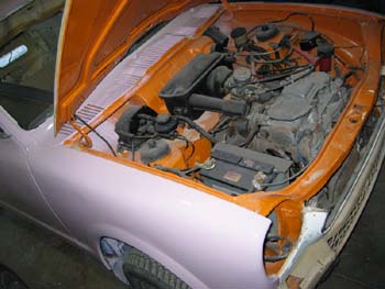 En cuanto a los bajos, es una suerte que Honda pensase (si bien no lo hizo con la parte que os he comentado) en dar una mayor protección a éstos. Estos coches tiene dos “desagües” y una capa como de una especie de “alquitranado/embreado” que hace que, si bien algún óxido puede haber, los trabajos a realizar en esta zona del coche después de tantos años sea mínima. Así que se lijo, se le dio oxino (transformador de óxido) y se pintó tanto por abajo (como algunas partes mecánicas del coche que quedan expuestas) con pintura negra vituminosa (antigravilla) y se hizo lo mismo por dentro, dándole un acabado en negro mate. No se pintaron los bajos por dentro en el color del coche por recomendación del chapista (temas de transpiración y demás). Después, ya sólo quedaba imprimar, dar aparejo y pintar. Algunas fotos más: