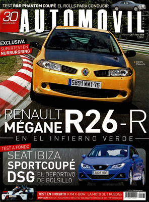 Prueba del Renault Megane R26R. Prueba del Seat Ibiza Sportcoupé DSG 1.6 16v. Prueba en circuito del KTM X-Bow. Prueba del Rolls-Royce Phantom Coupé. Contacto con el Porsche 911 Carrera PDK, por Arturo de Andrés. Nuevo Ferrari California.