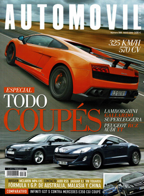 ESPECIAL COUPÉS. Prueba Comparativa: Audi TT 2.0 TFSI/Peugeot RCZ 1.6 THP. Dossier: McLaren MP4-12C. Prueba Comparativa: Mercedes E350 CGI Coupé/Infiniti G37 Coupé S. Contacto con el Audi RS5. Prueba del Lamborghini Gallardo LP 570-4 Superleggera. Contacto con el Jaguar XJ. Contacto con el Volkswagen Touareg, por Arturo de Andrés. Entrevista con James Muir, presidente de Seat:"Vamos a reinventar Seat". Clásicos: VI Rallye Isla de Mallorca.
