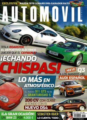 Prueba Comparativa: Maserati Gran Turismo S/Porsche 911 GTS. Magazin: El mejor Porsche 911 de la historia. Contactos: Audi Q3, BMW Serie 6 Coupé, Fiat Freemont. Prueba del Citroën DS4 THP 200 Sport. Prueba Comparativa: Porsche Cayman R/Tesla Roadster Sport. Prueba del Mazda 787B. Entrevista a Sebastien Ogier. Goodwood Festival of Speed.