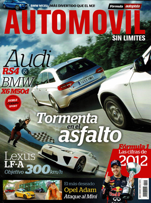 Contactos: Lexus LF-A, Jaguar XJ 3.3 V6 SC 4WD, Audi RS5 Cabrio, Opel Adam. Prueba Comparativa: BMW M135i/BMW M3. Historia: BMW M. Magazine: Audi e-bike Wörthersee. Prueba Comparativa: Audi RS4/BMW X6 M50d. Mundial de Rallyes. Técnica: motores Audi Gasolina. Análisis temporada F1. Viaje al Pirineo en un Hyundai Santa Fe 2.2 CRDi.