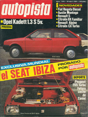 Primer contacto con el Seat Ibiza. Primer contacto con el Austin Montego. Banco de Pruebas del Opel Kadett 1.3 S. Ensayos con el nuevo Peugeot 205 Turbo 16. Rallye Safari.