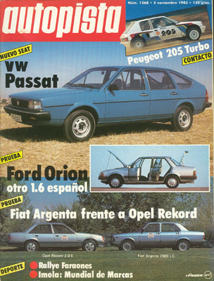 Primer contacto con el Volkswagen Passat. Primer contacto con el Peugeot 205 Turbo 16. Prueba del Ford Orion 1.6 GL. Prueba Comparativa: Fiat Argenta 2000 I.E./Opel Rekord 2.0 E. Audi Quattro Cabriolet. Ferrary Days, concentración de Ferraris en Italia. II Rallye de los Faraones.