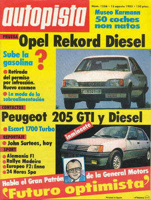 Banco de Pruebas del Opel Rekord Diesel. Entrevista a Roger Smith, presidente director general de General Motors. Consultorio. Museo Karmann, los coches que no nacieron. Entrevista con John Surtees. Rallye Vinho de Madeira. Gran Premio de Alemania. 24 Horas de Spa. Ford Escort 1700 Turbo.