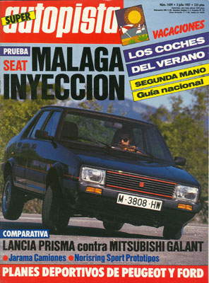 Especial vacaciones de verano. Banco de Pruebas del Seat Málaga Injection. Con qué coches hemos viajado desde los 60 hasta los 90. 25 aniversario del Ferrari GTO. Comparativa: Lancia Prisma Turbo Diesel/Mitsubishi Galant 1.8 GL/TD. Varias preparaciones sobre modelos de gran lujo. Carreras de camiones en el Jarama.