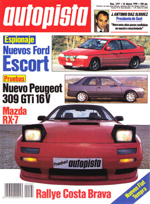 Banco de Pruebas del Peugeot 309 GTi 16v. Entrevista con Juan Antonio Díaz Alvarez, presidente de SEAT. Banco de Pruebas del Mazda RX-7 Turbo. Salón Retromobile. Rallye de Cataluña.