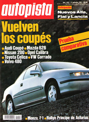 Prueba Comparativa: Audi Coupé 20v/Mazda 626 2.0i 16v 4WS/Nissan 200 SX/Opel Calibra 2.0i 16v/Toyota Celica 2.0 GTi 16v/Volkswagen Corrado G60/Volvo 480 Turbo. Rallye Príncipe de Asturias. Gran Premio de Italia de F1.