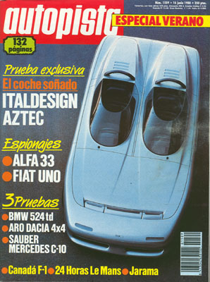 Italdesign Azca. Veteranos Lancia en España. Banco de Pruebas del BMW 524 TD. Especial verano. Banco de Pruebas del Aro Dacia 10.4 4x4. Prueba del Sauber-Mercedes C-10. Segundo Rallye del Descubrimiento. Gran Premio de Canadá de F1. Campeonatos de Velocidad en el Jarama. 24 Horas de Le Mans.