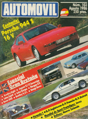 Contacto con el Porsche 944 S. Prueba Comparativa: Bentley Eight/Jaguar XJ-12 Sovereign. Magazin: Morgan 4/4. Magazin: Lotus Europa Special/Lotus Sprit Turbo. Comparativa: Range Rover Vogue Inyección manual y automático. Magazin: El coche frente al tren. Fórmula 1 en Detroit, Francia e Inglaterra. Sport-Prototipos. Rallye Nueva Zelanda. Rallyes en España. Bentley 4,5 litros Blower de 1929.