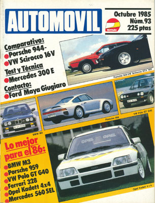 Salón de Francfort. Comparativa: Volkswagen Scirocco GTX/Porsche 944. Prototipo Ford Maya de Giugiaro. Prueba del Mercedes 300 E Automático. Comparativa: Alfa Romeo Giulia Spider/Porsche 356 C/Triumph TR4. Fórmula 1: Bélgica, Monza, Holanda. Rallyes en España. Rallye 1000 Lagos.