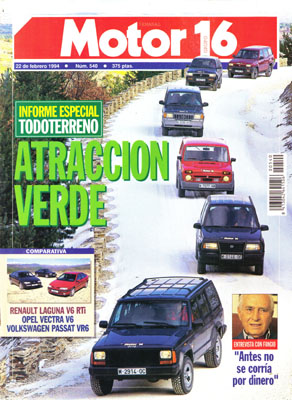 Comparativa: Opel Vectra 4p 2.5 V6 24v/Renault Laguna TRi V6/Volkswagen Passat VR6 GL. Informe especial Todo Terreno. Prueba del Toyota 4 Runner 3.0 TD. Vipo, el Biscuter gallego. Juan Manuel Fangio: confesiones del Patriarca. Honda Goldwing. 24 Horas de Daytona.