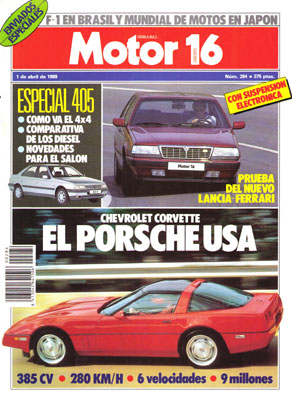 Prueba Comparativa: gama Peugeot 405 Diesel. Al volante del Chevrolet Corvette ZR1. Prueba del Lancia Thema 8.32 Ferrari. 9 metros de coche. Gran Premio de Brasil de F1.