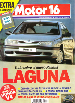 Presentación del Renault Laguna. Prueba Comparativa: Citroën XM V6 Exclusive/Renault Safrane Baccara V6i. Prueba del Honda NSX. Prueba del BMW 325 TDS Automático. Biscuter, vuelve el pequeño rey. Honda CB 500. Carlos Sainz prueba el Subaru Impreza. No incluye el suplemento especial.