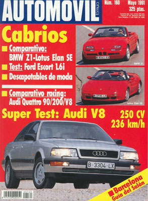 Prueba Comparativa: BMW Z1/Lotus Elan SE. Prueba del Ford Escort 1.6i Cabrio. DOSSIER: Oferta Cabrio en España. Prueba del Audi V8. Comparativa Racing: Audi V8 Gr.A/Audi 200 Turbo Quattro TransAm/Audi 90 Quattro IMSA-GTO. Rallye Safari. Entrevista con Marku Alen. Gran Premio de Brasil de F1.