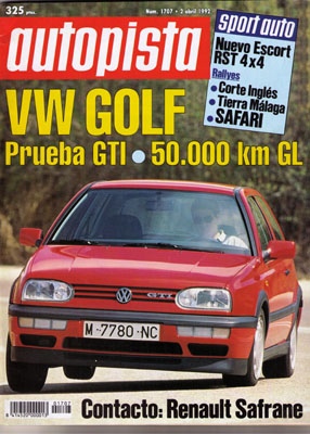 Contacto con el Renault Safrane. Prueba del Mazda 626 2.5i V6 4WS. Prueba del Volkswagen Golf GTi. Prueba de 50.000 km con el Volkswagen Golf GL 90 CV. Prueba del la Chrysler Voyager 2.5 SE y 3.0 LE. Prueba del Ford Escort Cosworth RST 4x4 de rallies. Rallye Safari. Rallye el Corte Inglés.