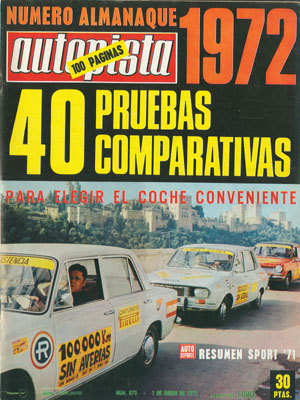 NUMERO EXTRA ALMANAQUE 1972. Las noticias más destacadas de 1971. Resumen de todas las pruebas realizadas en 1971. Variantes automovilísticas de 1971. Campeonatos de 1971. Campeonato de España de Velocidad. 1971, un año motociclista sin facilidades. Campeones de España de 1971. Entrevista a Alberto Ruiz-Giménez. Esteban Costa, fabricante de tubos de escape. La industria del automóvil en España en 1971. Publicidad en color del Mini 1275 GT.