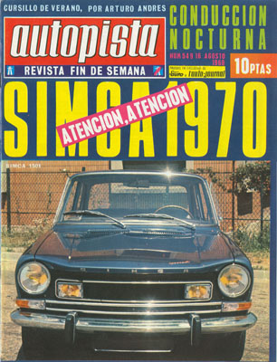 Cursillo de verano: conducción nocturna. Nuevos Volkswagen: 411 E/Variant 411/181. Nueva gama Simca para 1970. Los Fórmula 1 de tracción total. VII Rallye de las Rías Bajas. Fusión British Leyland-AUTHI. Consultorio del lector.