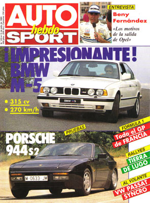 Prueba del Porsche 944 S2. Prueba del BMW M5. Nuevo Volkswagen Passat Syncro. Gran Premio de Francia de Fórmula 1. Entrevista con Beny Fernández. Rallye de Tierra de Lugo. Autocross: Campeonato de España en Badajoz. Españoles en Inglaterra.