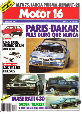 Prueba del Fiat Uno Brio. Nuevo Maseati 430. Prueba Comparativa: Alfa Romeo 75 TD/Lancia Prisma ds/Renault 21 TXD. La moda del Peugeot 205. Prueba del Ford Escort 1.6i Ghia.