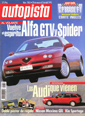 Contacto con el Alfa Romeo GTV y Spider. Prueba del Nissan Maxima QX 2.0 V6 SE Aut. Prueba del Kia Sportage 2.0 MRDi. Prueba del Lancia Dedra SW Integrale. Cominza el CET 95. 4 Horas de Monza. Gran Premio de Brasil de F1. Rallye El Corte Inglés.
