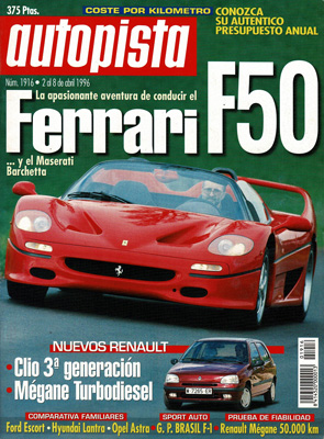 Contacto con el nuevo Renault Clio. Contacto con el Ferrari F50. Módena, centro automovilístico. Contacto con el Maserati Barchetta Stradale. Prueba Comparativa: Ford Escort Nomade Ghia 1.8/Hyundai Lantra Station Wagon 1.6 GLS/Opel Astra 1.6 GL Caravan. Coste por kilómetro de todos los coches a la venta en España. Prueba del Opel Vectra 1.7 TD GL. Entrevista a Jorge Nogués. Rallye Villa de Adeje. Gran Premio de Brasil de F1.