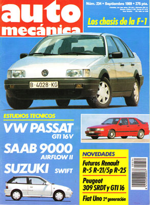 Nuevos Peugeot 309 GTi 16v y SRD. Estudio técnico del Saab 9000 Airflow II. El sistema de distribución variable de Honda. Consultorio técnico. Cómo se construye un bastidor de F1. Estudio técnico del Suzuki Swift 1.3 GTi. Nuevo Volkswagen Passat GT 16v.