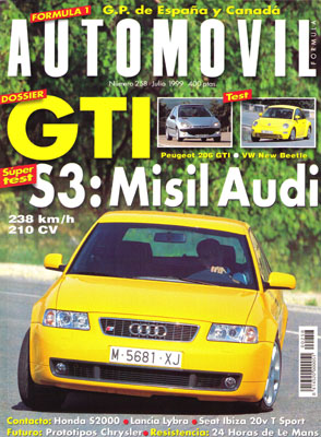 Prueba del Volkswagen New Beetle 2.0. Prueba del Peugeot 206 GTi. Contacto con el Seat Ibiza 1.8 20v T Sport. Prueba del Audi S3. Dossier: los GTi del año 2000. Contacto con el Honda S2000. Contacto con el Maserati 3200 GT Automático. Rallye de Argentina y Acrópolis. 24 Horas de Le Mans. Gran Premio de España de F1. Gran Premio de Canadá de F1. Lancia Flaminia Loraymo de 1959.