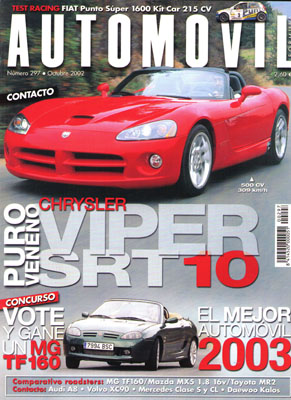 Prueba Comparativa: MG TF160/Mazda MX5 1.8 16v/Toyota MR2. Contactos: Audi A8, Chrysler Viper SRT10, Volvo XC90, Mercedes Clase S y CL. Especial Audi. Fórmula 1: Gran Premio de Bélgica e Italia. Rallye RAC Vasco-Navarro. Prueba Racing del Fiat Punto Racing 1600.