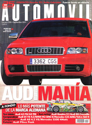 Gran Prueba Comparativa: Audi S4/BMW M3 SMG II/Mercedes C32 AMG/Volvo S60 R. Prueba Comparativa: Audi A8 4.2 Quattro/Mercedes S500 4Matic. Prueba Racing del Audi Sport Quattro S1/Audi R8 "Crocodile". Prueba del Audi A3 FSi/DTi. Contacto con el Porsche 911 Turbo Cabriolet. Fórmula 1: G.P. de Inglaterra y Alemania. Rallye de Finlandia. Baja España-Aragón. Clásicos: Goodwood Festival of Speed.
