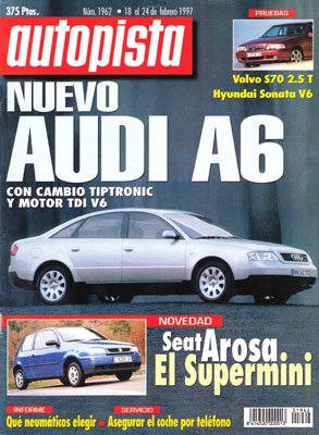 Nuevo Audi A6. Nuevo Seat Arosa. Nuevo Renault Pangea. Dossier sobre neumáticos. Prueba del Volvo S70. Prueba del Hyundai Sonata 3.0 V6. Crash Test del Audi A3. Asegurar por teléfono. Rallye de Suecia. McLaren Mercedes F1. Prueba del Peugeot 306 Maxi.