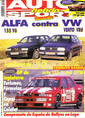 Prueba Comparativa: Volkswagen Vento VR6/Alfa Romeo 155 V6. Contacto racing con el Alfa Romeo 155 V6 TI. Rallye San Froilán. Carreras en Calafat. Reportaje sobre la Fórmula Renault-ELF. Todas las pruebas regionales.