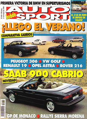 Nuevo Saab 900 Cabrio. Prueba Comparativa: Volkswagen Golf Cabrio/Peugeot 306 Cabriolet/Renaul 19 Cabrio/Rover 216i Cabrio. Gran Premio de Mónaco de F1. Carreras en el Circuito de Calafat. Rallye Sierra Morena. Revival Tour de Corse. Avance Rallye de La Rioja. Avance Rallye del Atlas.