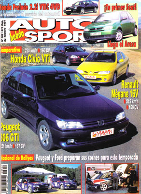 Presentación del Seat Arosa. Prueba Comparativa: Peugeot 306 GTi/Renault Megane 16v/Honda Civic VTi. Prueba del Honda Prelude 2.2i VTEC 4WD Automático. Rallye de Suecia. Todas las competiciones regionales. IV Fórmula Slalom. Pruebas del equipo Ford del Nacional de Rallyes. Pruebas del Equipo Peugeot. Prueba racing de los Peugeot 106 Kit Car oficiales. Equipo McLaren Mercedes.