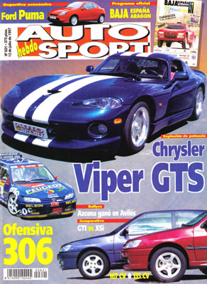Al volante del Chrysler Viper GTS. Prueba Comparativa: Peugeot 306 GTi/306 XSi. Contacto con el Ford Puma. Rallye de Avilés. Baja España Aragón. Todas las competiciones regionales. Autocross en Teruel. Entrevista a Jacques Villeneuve.