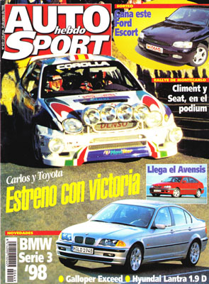 Al volante del Toyota Avensis. Nueva BMW Serie 3 ´98. Prueba Comparativa: Volvo S40 2.0 T/BMW 323i/Audi A4 2.4. Al volante del Galloper Exceed 2.5 TDi. Nuevo Citroën Xantia Serie II. Equipo Prost Grand Prix. Rallye de Montecarlo. Todas las competiciones regionales. Mercedes en el Circuito del Jarama. Calendario automovilístico ´98.