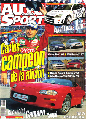 Prueba del Chevrolet Camaro Coupé. Prueba Comparativa: Volkswagen Passat 1.8 T/Volvo S40 2.0 T. Prueba Comparativa: Honda Accord 2.0i ES VTEC/Alfa Romeo 156 2.0 16v Twin Spark. Nuevo Audi A8 gama '99. Novedad racing: Ford Focus WRC. Post del Rallye Gran Bretaña. Fórmula Rallye Madrid. Rallye de Madrid. Fórmula 1: McLaren y Ferrari. Prueba racing: Chrysler Viper GTS-R '98.