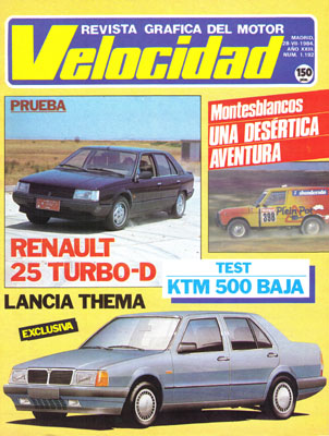 Prueba del Renault 25 Turbo D. Circulación en carreteras de montaña. Crece la gama Peugeot 205. Primeras fotos del Lancia Thema. Nuevo Lancia Delta LX 1300. bb, una nueva filosofía. Test de la KTM 500 Baja. Buen ejercicio de ENASA en 1983. Ferrari hace balance. Consultorio técnico del lector. Gran Premio de Inglaterra de F1. Carrera de clásicos en Montjuic. II Baja Montesblancos.