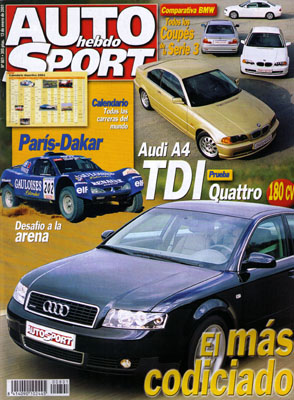 Nuevo BMW X Coupé. Prueba de la gama BMW Serie 3 coupé. Prueba del Audi A4 2.5 TDi Quattro. Al volante del Renault Twingo 16v. Prueba del Toyota MR2 SMT. Entrevista a Pedro de la Rosa. Entrevista a Olivier Panis. París-Dakar. Todas las pruebas regionales.