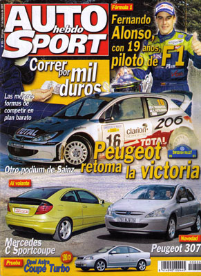 Al volante del Mercedes C Sportcoupé. Nuevo Peugeot 307. Prueba del Opel Astra Coupé 2.0 Turbo Bertone Edition. El volante del Peugeot 406 Coupé HDi. Nueva gama MG. Nuevo Lancia Thesis. Rallye de Suecia. Actualidad de la Fórmula 1. Fernando Alonso, a punto de entrar en la F1. 24 Horas de Daytona. Planes deportivos de Renault Sport España.