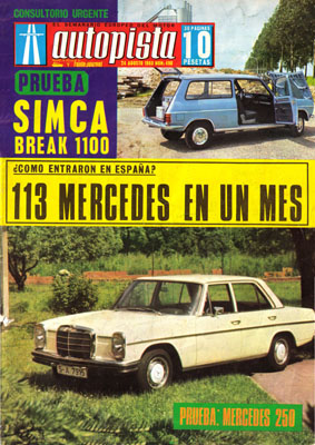 Presentación del Volkswagen 411. Prueba del Simca 1100 Break. Prueba del Mercedes 250. Venta de turismos en junio. La Copa de Oro de Oulton Park. VI Rallye Rías Bajas. AUTOPISTA Club, Diálogo semanal, el consultorio de Antonio Madueño.