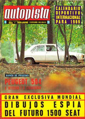 Primeros dibujos del futuro Renault 12. Prueba del Peugeot 504 Carburador e Inyección. AUTOPISTA Club, Diálogo semanal, el consultorio de Antonio Madueño. Calendario Deportivo Internacional de Velocidad 1969. Rallye Barcelona-Andorra. Matriculación de vehículos industriales en septiembre.