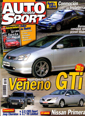 Al volante del Honda Civic Type R. Nuevo Nissan Primera. Prueba Comparativa: BMW 330xi/Audi A4 3.0 Quattro. Prueba Comparativa: Jeep Cherokee 2.5 CRD Sport/Cherokee 3.7 V6 Limited. Challenge Bibendum. Fórmula 1: Prost Grand Prix presenta suspensión de pagos. Copa Renault Clio y TRT en el Jarama. G.P. de Macao de F3. El Mundial de Rallyes en Gran Bretaña. Crónica de Enrique García Ojeda.
