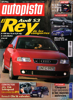Nuevo Audi S3 y A3 5 puertas. Contacto con los Alfa Romeo 156 Selespeed y Q-System. Nuevo Nissan 200 SX. Contacto con el Renault Clio 16v y SI. Prueba del Subaru Legacy Outback 2.5 AWD. Centro Técnico Nissan en España. Nuevo Mitsubishi Lancer GSR Evo VI. Fórmula 1: llegan los nuevos monoplazas. Entrevista a Balba González-Camino.