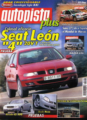 Contacto con la gama Seat León, Cadillac Seville. Prueba del Seat León 4. Prueba del Mercedes CL 500. Técnica: la combustión sigue viva. El progreso y sus orígenes (VI) Renault 4/4. Prueba del Chrysler Neon 2.0i 16v LE. XVI Salón Auto Retro de Barcelona. Euro Open Nissan en Valencia. Rallye de Tenerife. Rallye de Australia.